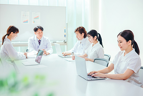 スタッフ全員で患者さまの情報や予約状況を共有し、その日に必要な役割分担を確認します。困りごとや気づきも話し合い、より良い診療ができるよう全員で意識をそろえます。